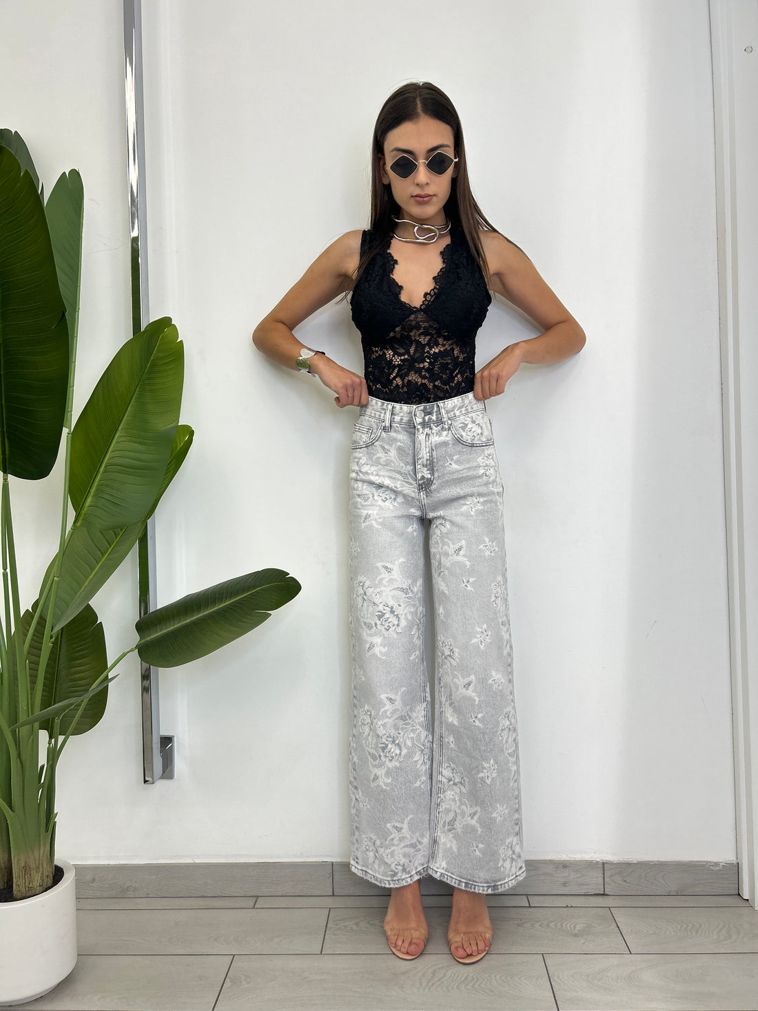 Jeans, palazzo con fantasie La ragazza in foto indossa la taglia XS ed è alta...