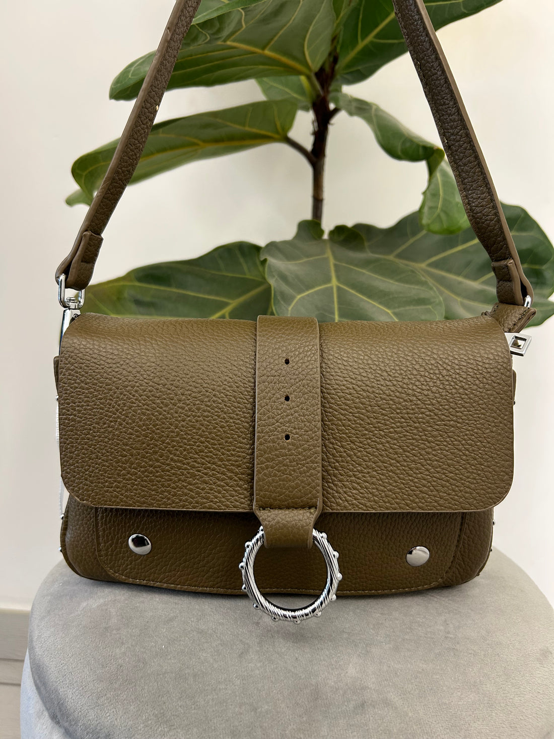 Minibag in similpelle con borchie in color verde militare