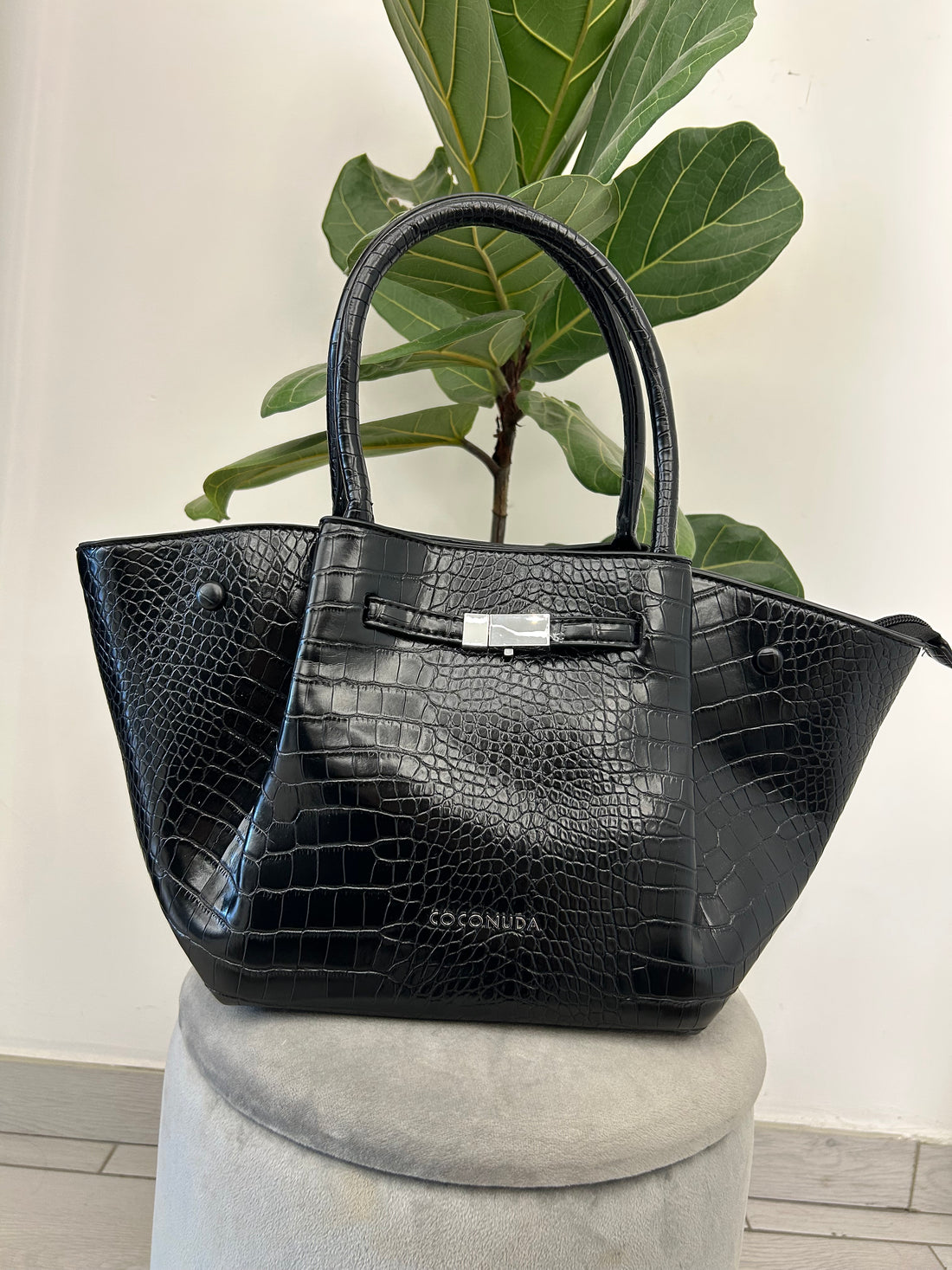 Borsa coconuda in similpelle pitonato