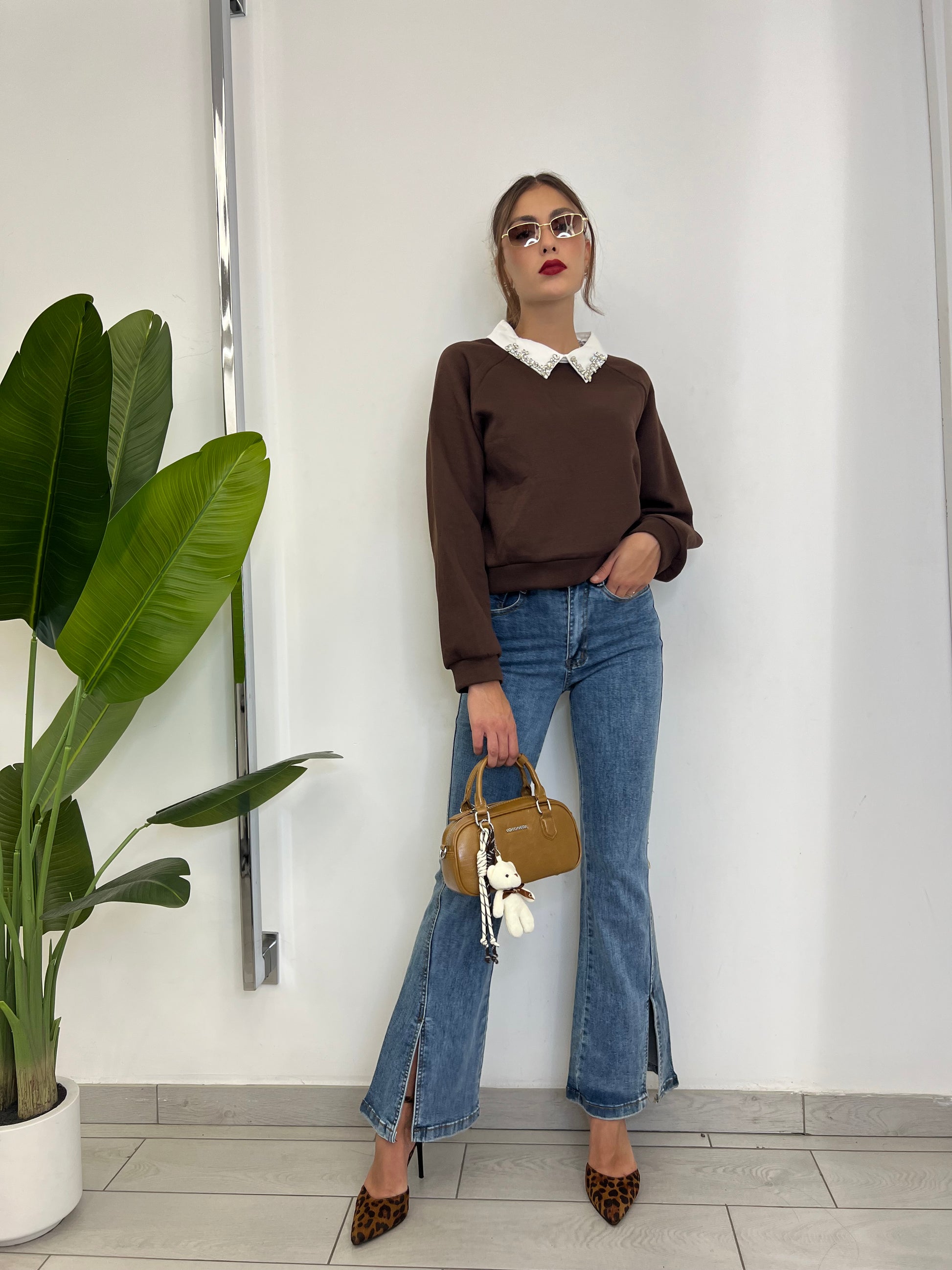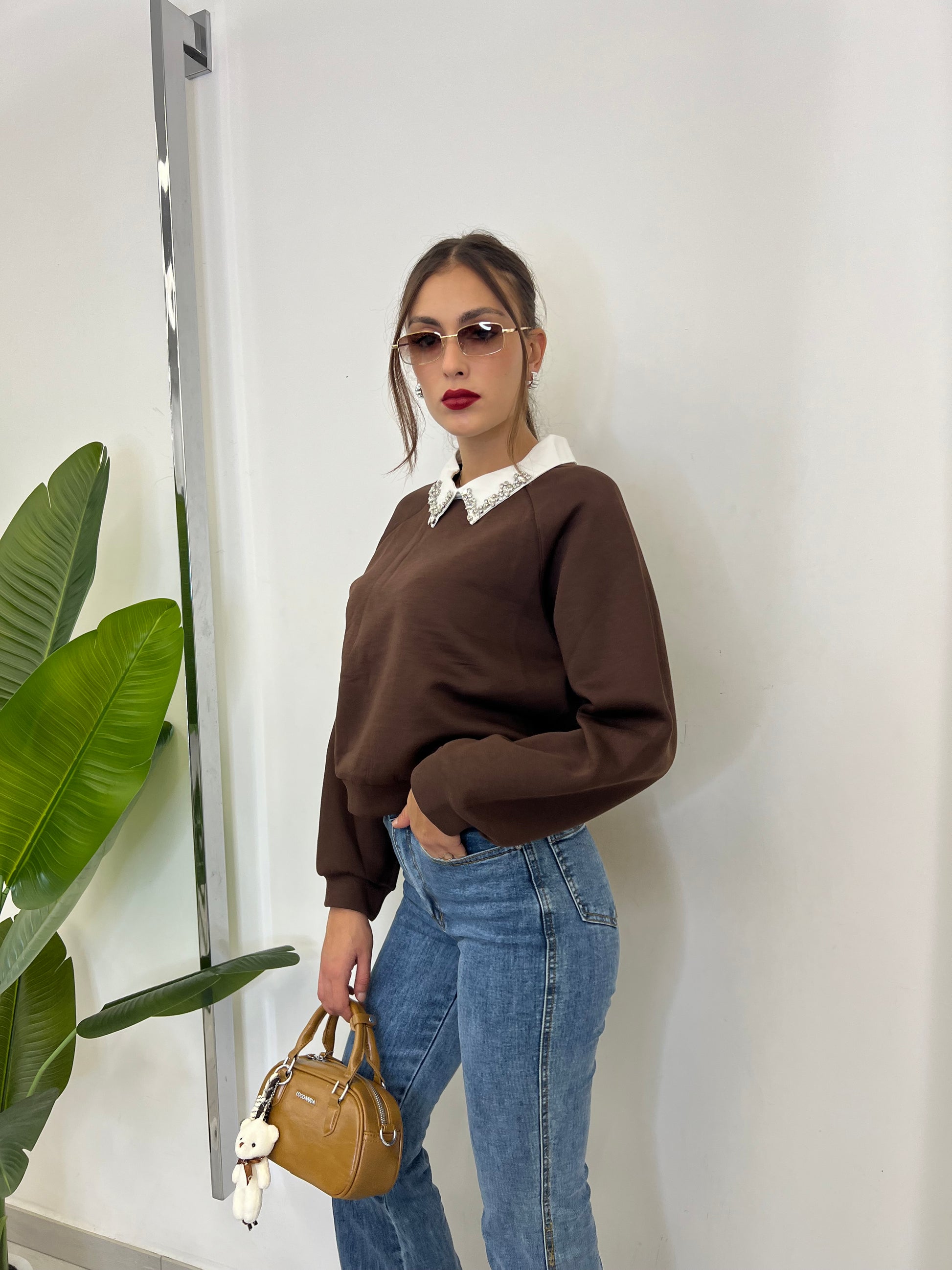 Felpa con Pietre sul collo taglia unica vestibilita dalla taglia 38 alla 46