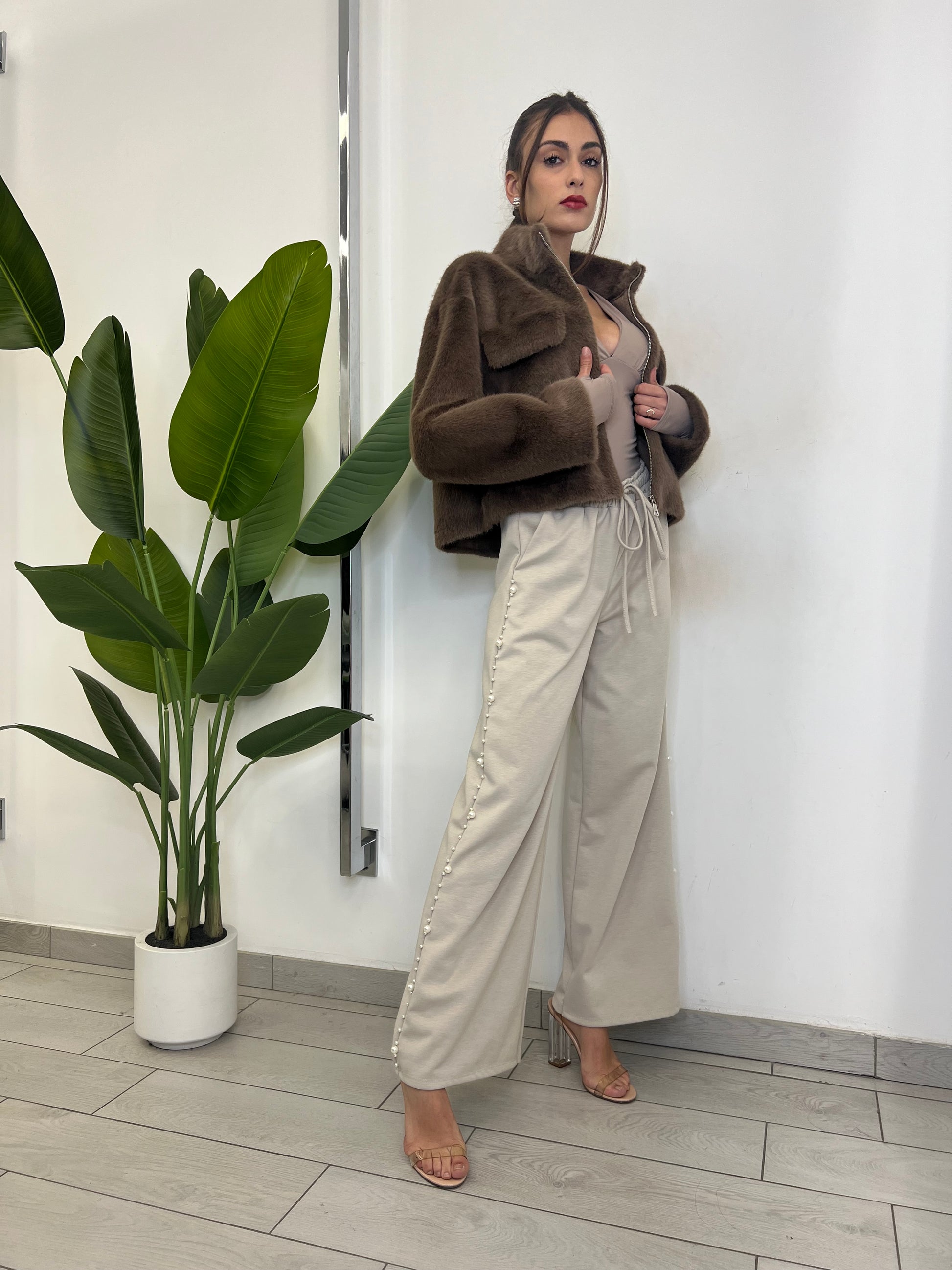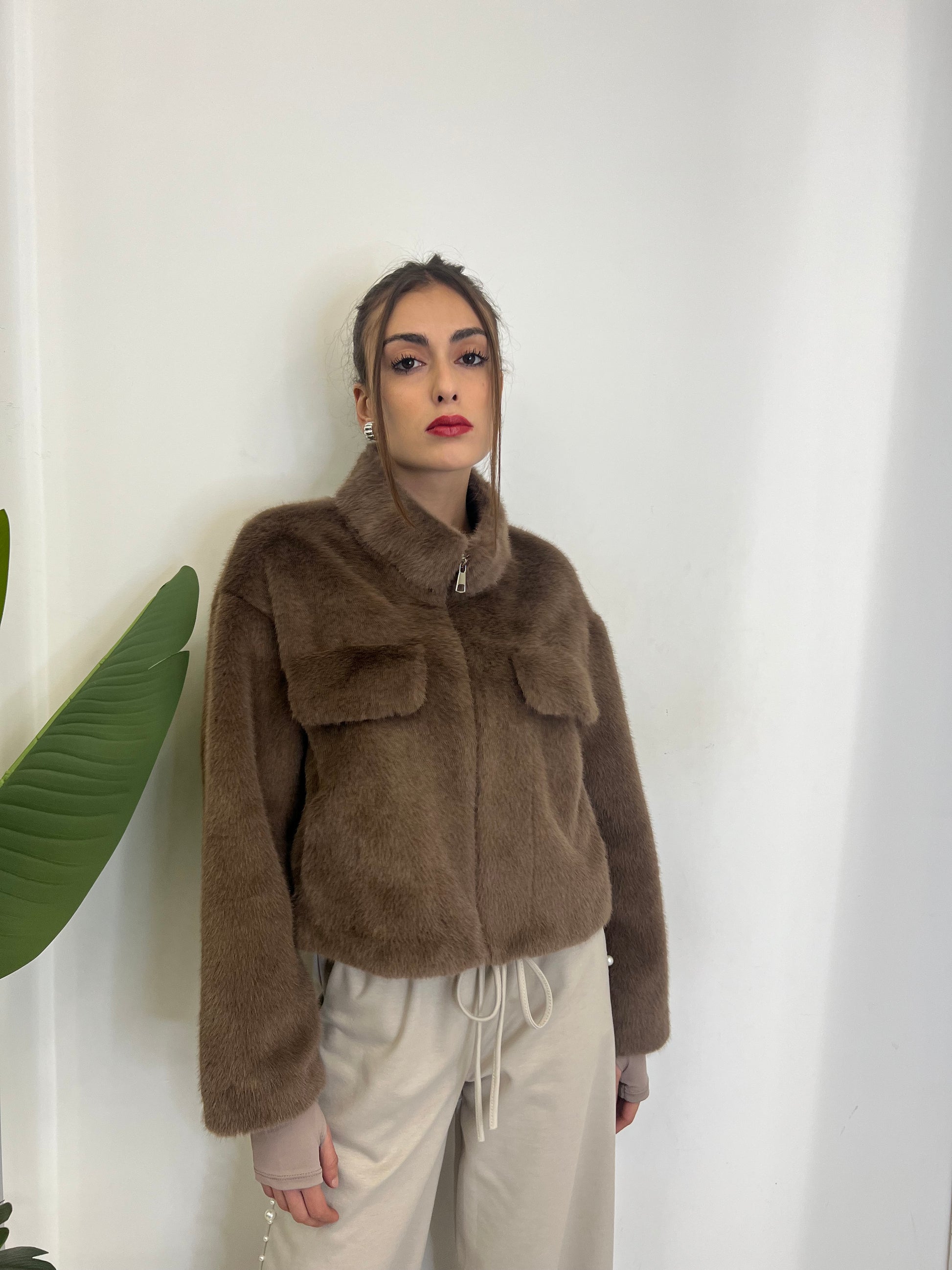Giubbotto in eco pelliccia con cerniera