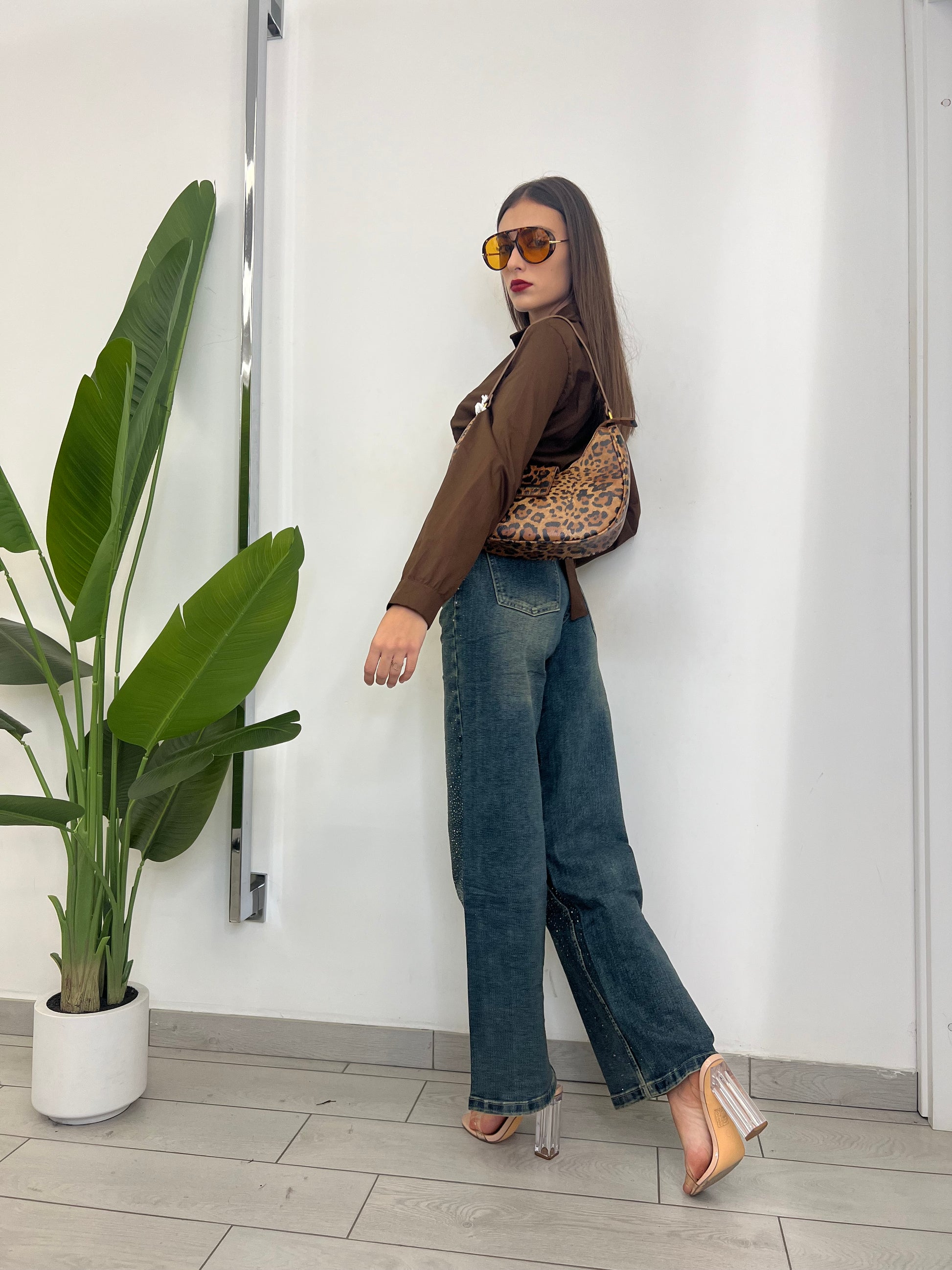 Jeans con borchie applicate