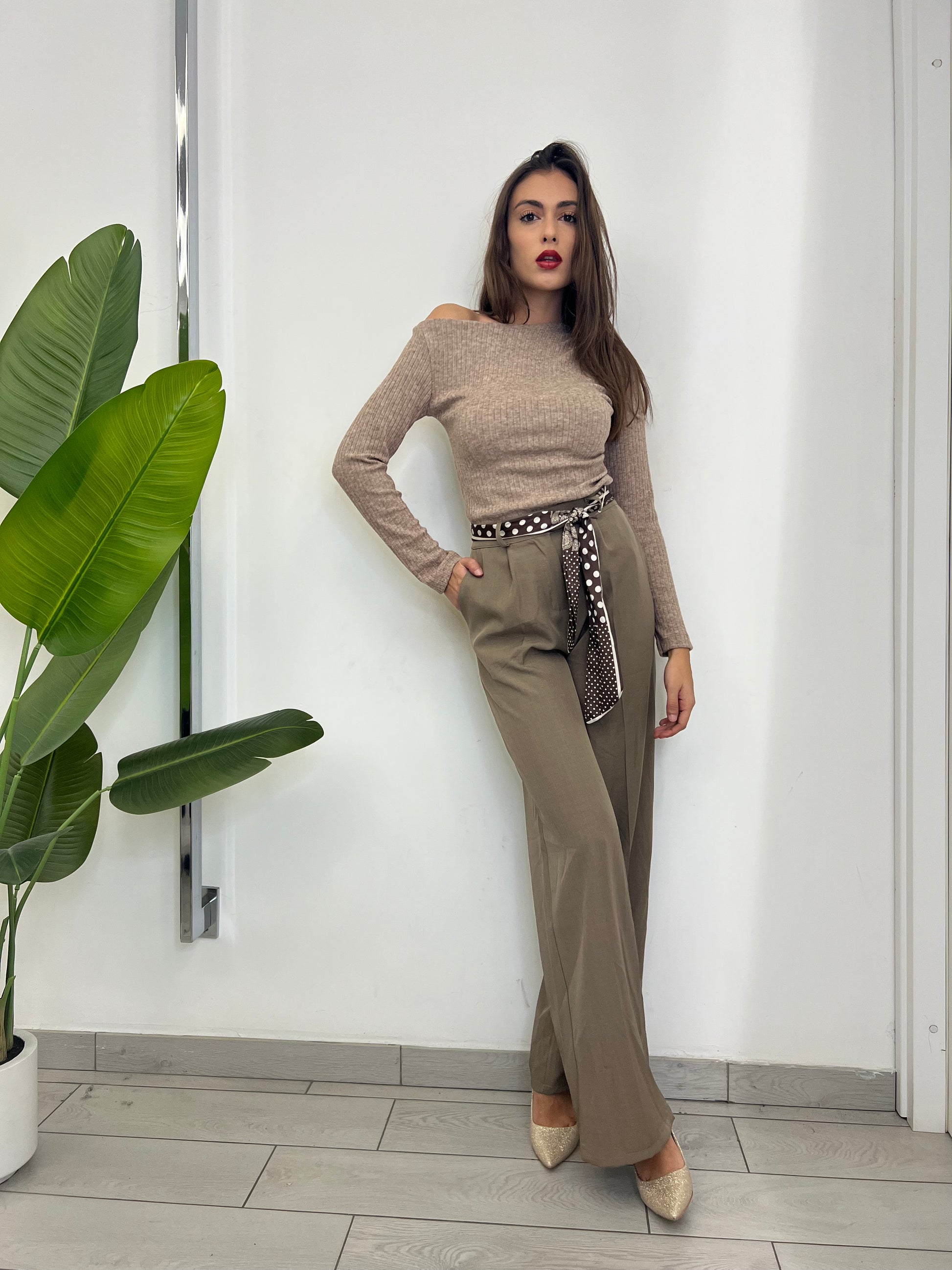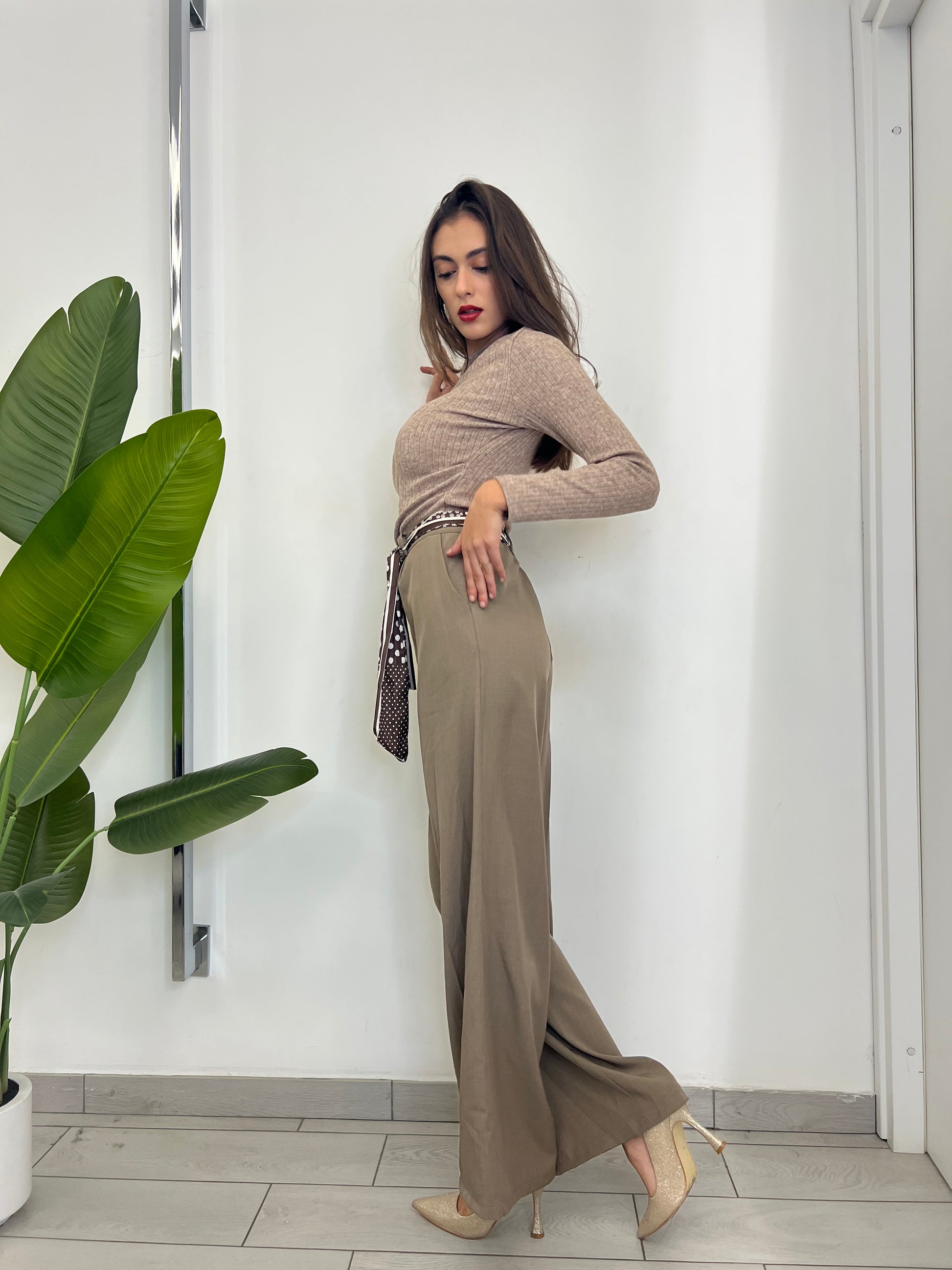 Pantalone taglia unica con elastico dietro foulard abbinato vestibilità dalla taglia 38 alla 46
