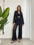 PANTALONE A ZAMPA TAGLIA UNICA RICAMATO CON ELASTICO IN VITA,VESTIBILITA’ DALLA TAGLIA 40 ALLA 46