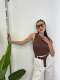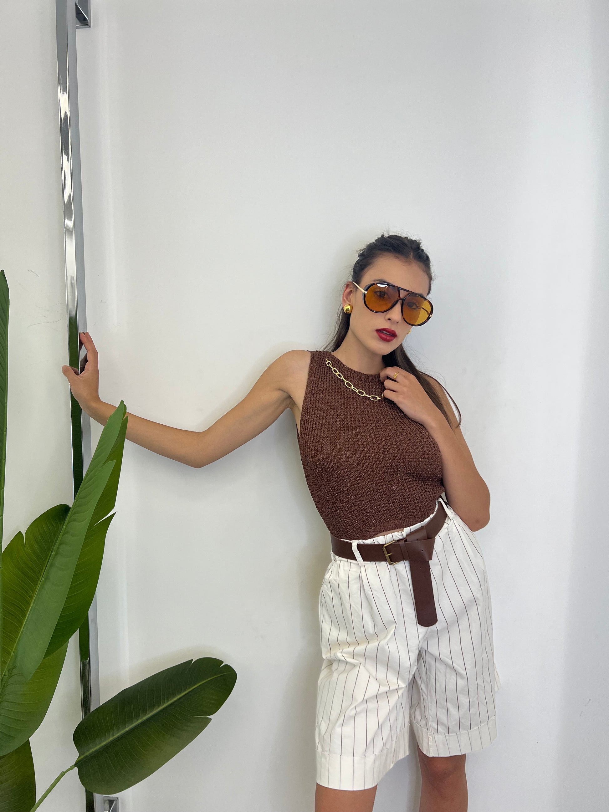 Top taglia unica vestibilità da taglia 38 alla 46 composto dall’80% viscosa 20% metallico Prodotto interamente in Italia